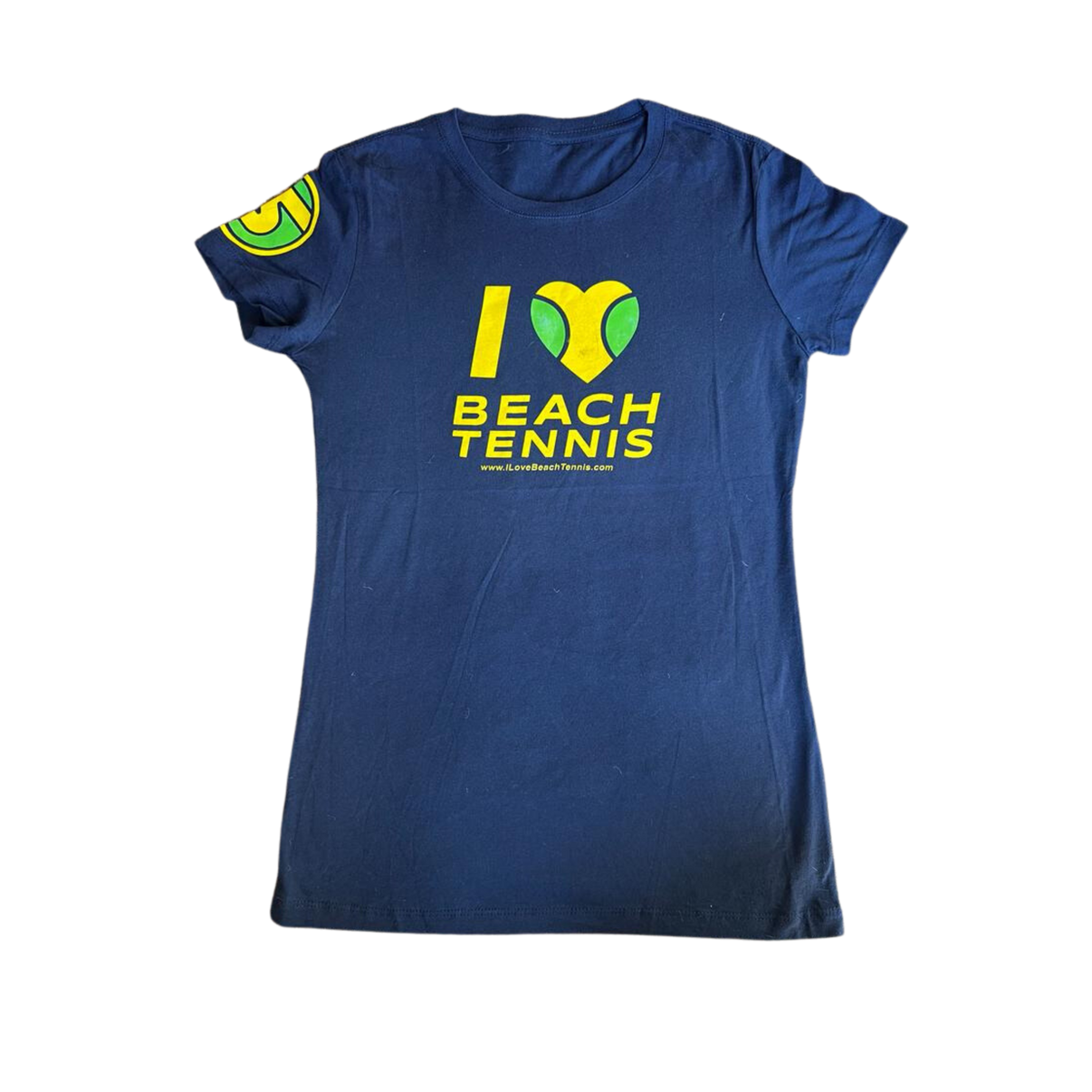 Women's I ❤️ Beach Tennis Crew Neck in Navy with Yellow/Green