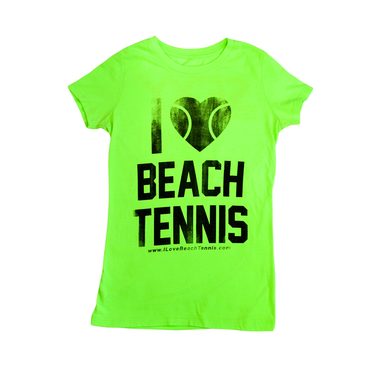 Women's I ❤️ Beach Tennis Crew Neck Tee in Neon Green & Distressed Black